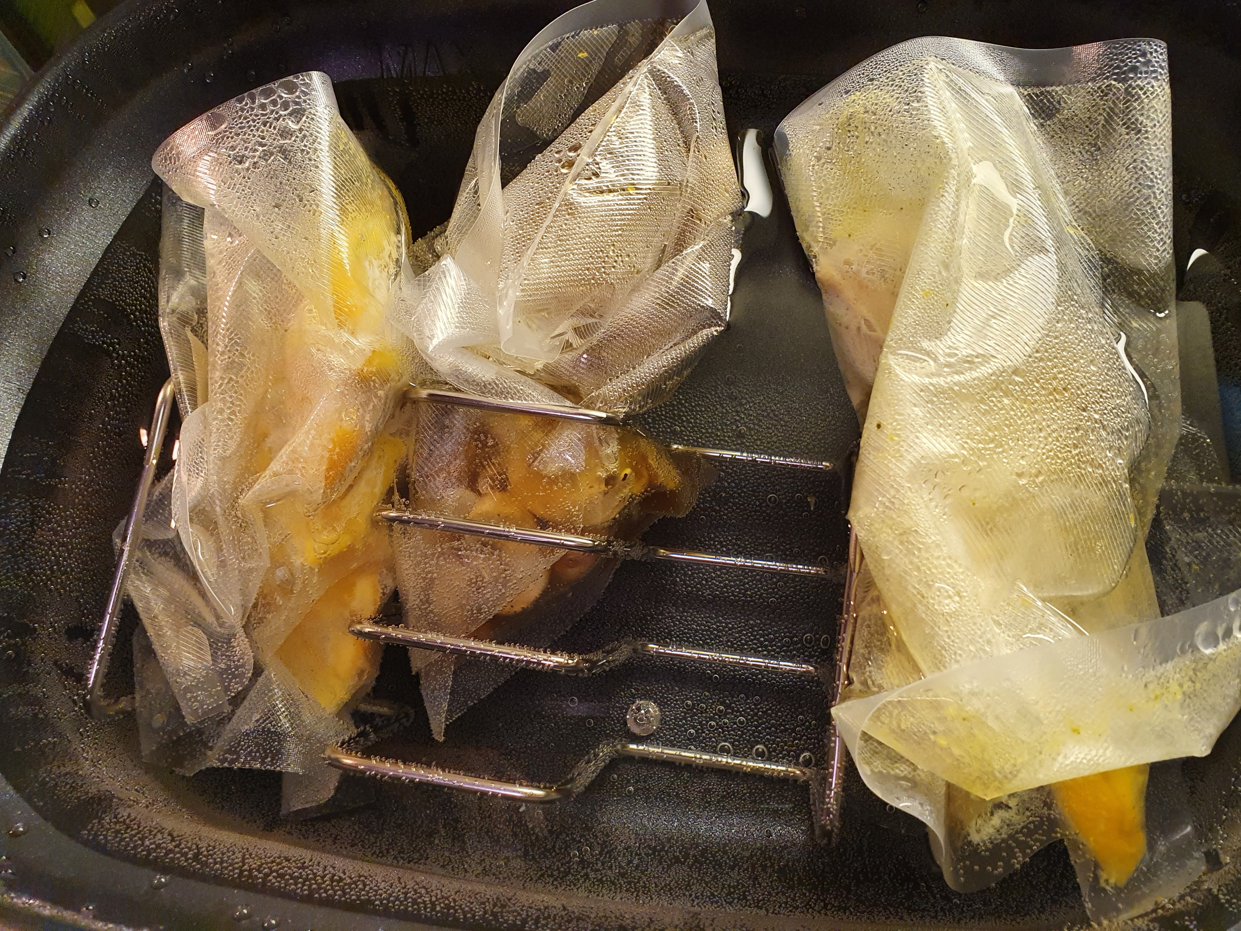 Sirkulaattorin mukana tuli metalliritilä, jonka tarkoitus on estää pusseja suorittamasta kuviokelluntaa ja estää tuotteita kypsymästä epätasaisesti. Ritilä oli kuitenkin aavistuksen liian kevyt tälle kuormalle ja yritti pintaan. Jatkoa silmällä pitäen pitää kerryttää s-bonuksia ja hankkia joku lisäankkuri.