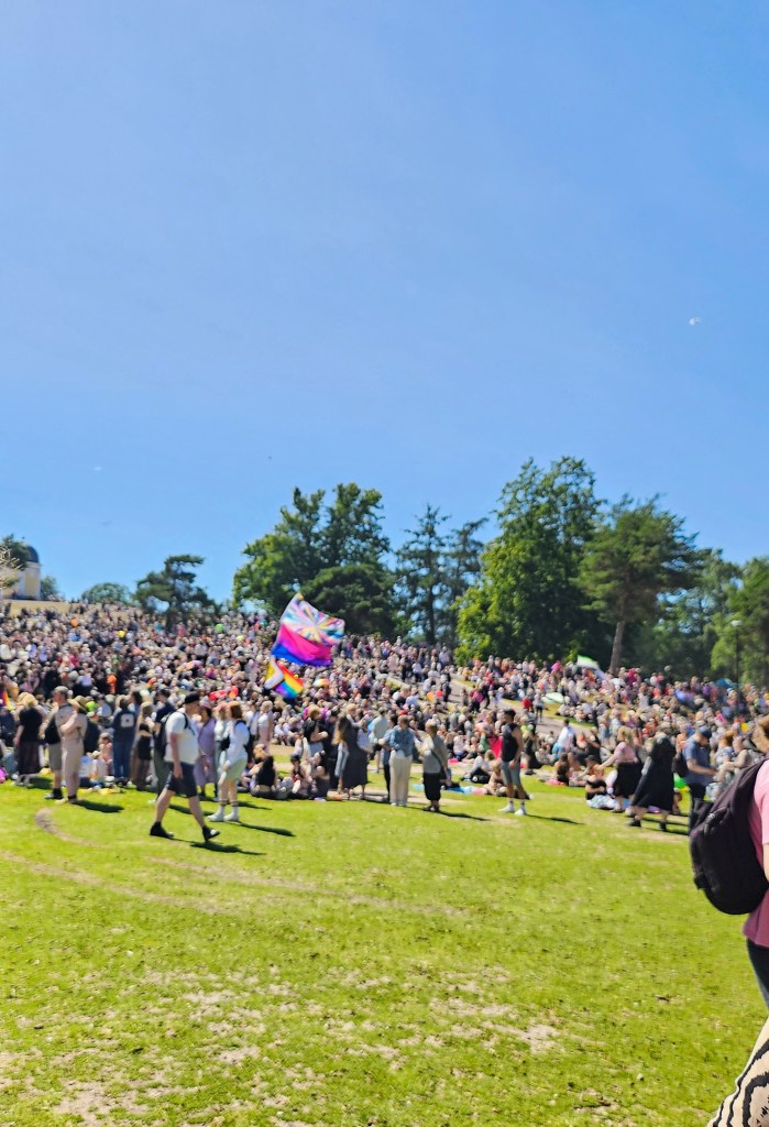 Pieni osa Pride-juhlijoista Kaivopuistossa 2024.
